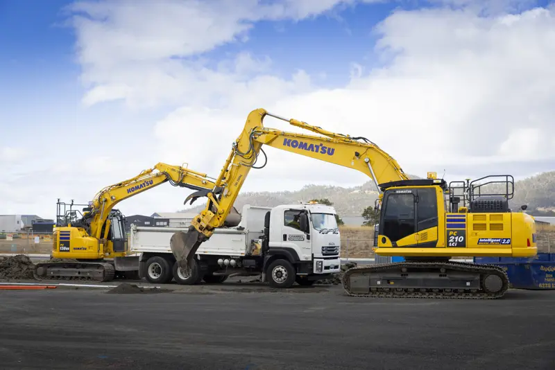 The Isuzu fleet includes an FYJ 300-350 twin-steer tilt tray, two FXZ 240-350 Autos with tipper bodies, three FVR 165-300 hook-lift trucks and a capable NLS 45-150 all-wheel drive service truck for on-site maintenance of excavating machines.