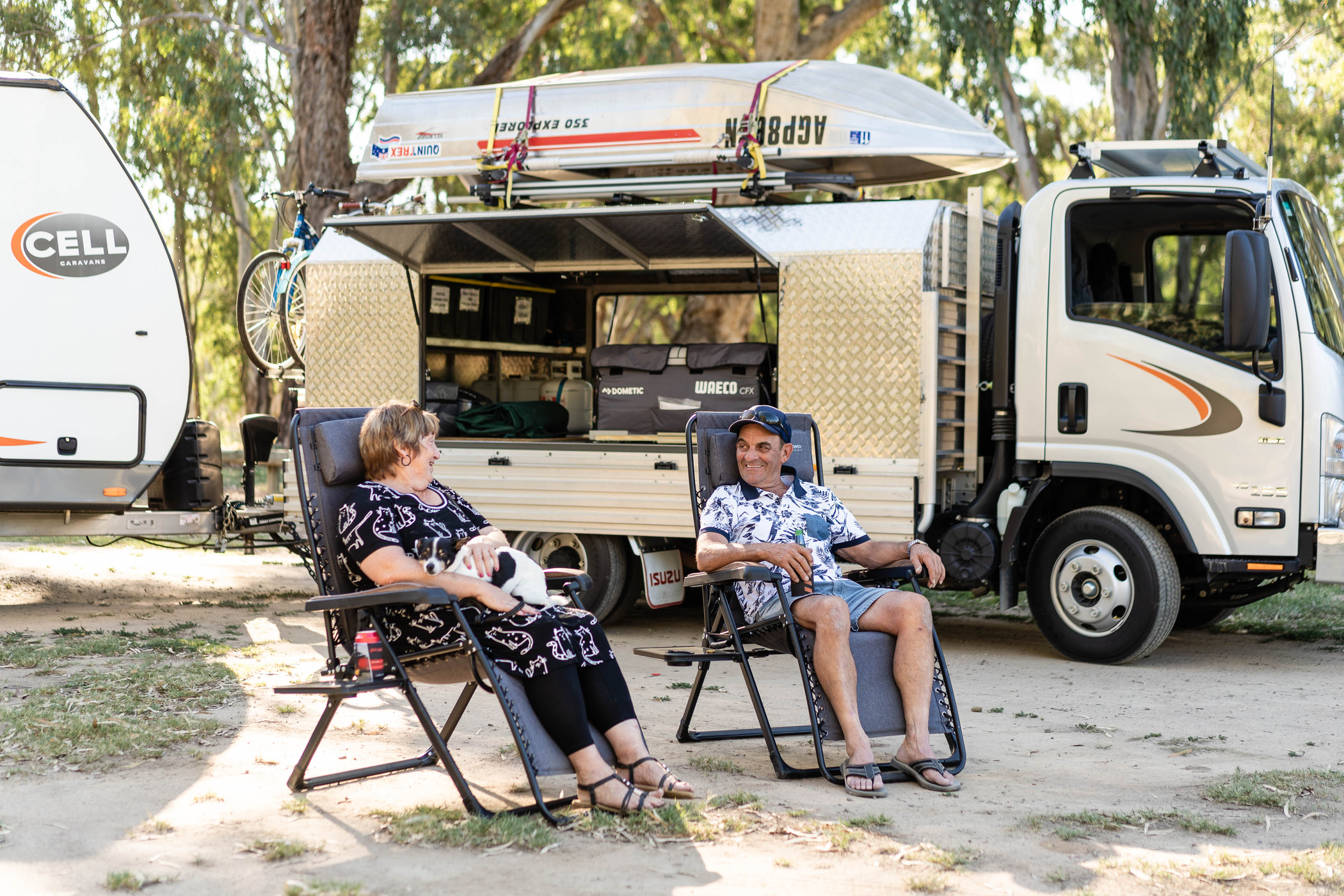 The couple love their Isuzu Tradepack so much they even re-lettered the nomenclature to spell their intention—renaming it their Isuzu “Retirementpack”.