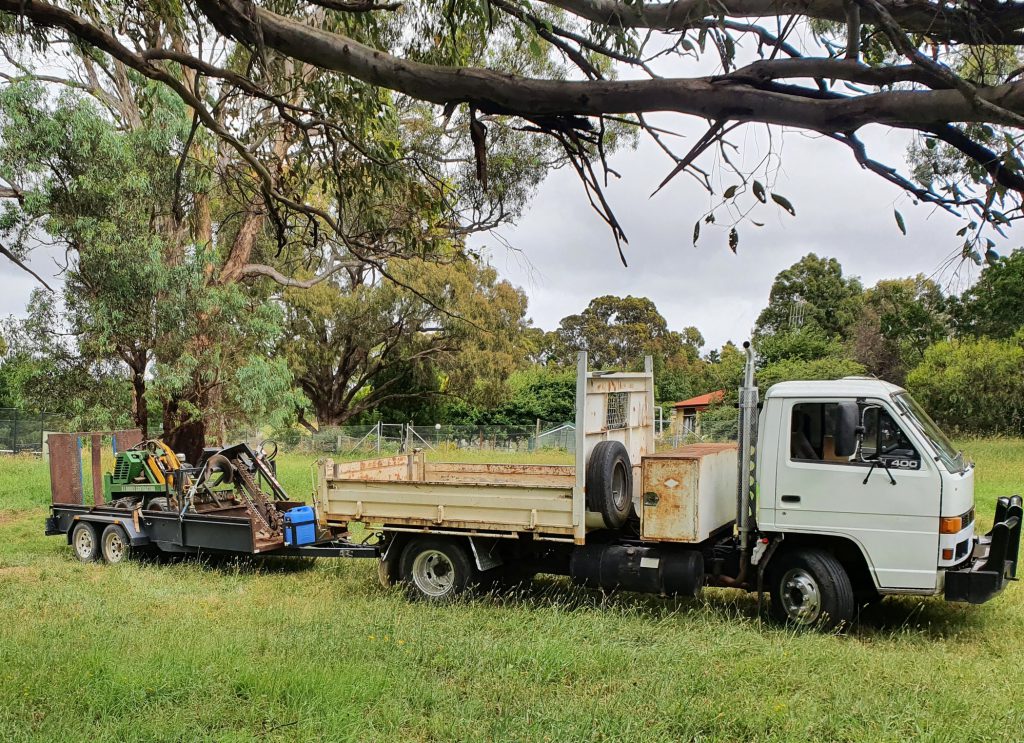 Andrew Sibley, owner of Bobcat Tipper Service knows that old trucks still work hard. This 2003 Isuzu NPR 200 has done the kilometres and gone the miles throughout New South Wales. The tipper tray is strong after all these years taking loads from the bobcat towed behind.