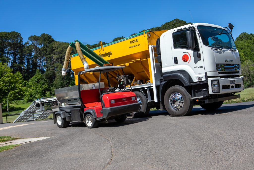 Each time of the year brings different challenges… spring sees Evans Turf Services put down the cricket wickets, and autumn’s work involves seeding and fertilising football grounds to create lush, green grass.