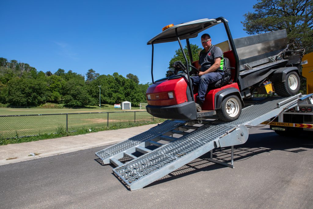 Craig’s gadgets, tools and equipment for turf maintenance all fit neatly on the back of the FYJ, which was fitted with a tray body, thanks to a custom build by a mate at Australian Pipe Technology in Gisborne, Victoria. Additional customisation was done, and the result was a hydraulic ramp at the rear, allowing Craig to easily drive all his equipment up and down the tray.