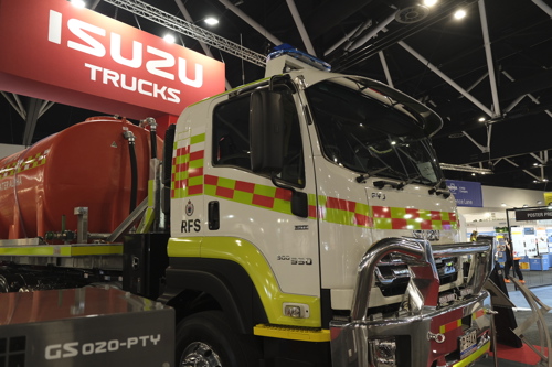 Demonstrating the versatility of its product range for support services, Isuzu showcased an FYX 350-350 Auto 10x4 service truck engineered for the New South Wales Rural Fire Service.