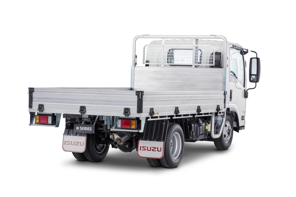 The factory-backed, heavy duty aluminium tray body comes with integrated load restraint anchor points, headboard including rear window protector, removable drop sides and rear tailgate as well as an Isuzu reversing camera.
