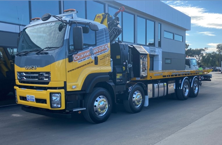 Craneworx is a crane and rigging hire business based in Adelaide that offers a range of services covering crane hire and rigging steel erection and constructions, not to mention relocations and installations. Daniel’s 2021 FYJ 300-350 model has a GVM of 30,000 kilograms and a GCM 45,000 kilograms meaning that Craneworx will never have to worry about being overloaded or unable to get their Hyva loader crane from A to B.