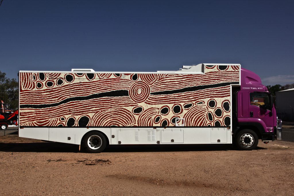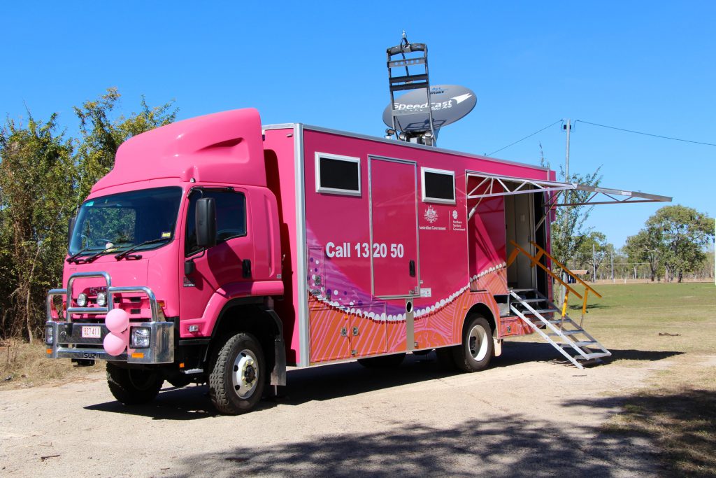 In regional and remote communities, access to quality health services, that metropolitan Australians often take for granted, can be few and far between. Alert to these needs, BreastScreenNT purchased an Isuzu FTS 800 4x4 back in 2014, which was customised by Queensland-based company Mills-Tui. The truck is fitted-out with all the medical equipment and facilities needed to become a mobile breast screen clinic aiding in early detection of breast cancer. Travelling directly to remote Aboriginal communities across the Territory, BreastScreenNT brings this important health service right to their doorstep, all in an unmissable hot pink wrap. Selected for its 4x4 abilities, the FTS is as rugged as it gets. It’s been fully weather proofed for a Top End climate, with a composite aluminium interior designed for the humidity, and powerful air-conditioning to protect the delicate equipment. Satellite equipment relays results and other information back to Darwin instantly, while a generator and a hot water system add important functional amenity. Finally, a large sun awning reaches out to shade those waiting for this valuable service.