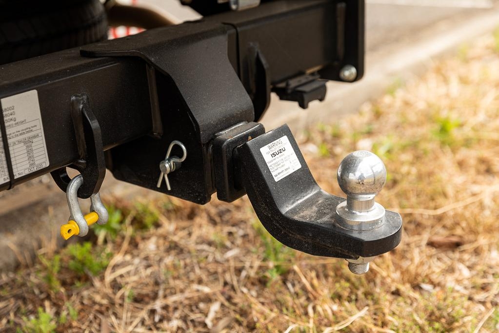 As part of Isuzu’s popular Ready-to-Work range of turnkey solutions, our test truck comes ready to roll as a five-seater dual-cab with pre-fitted heavy-duty aluminium tray. This drop-side tray is a Triple M unit that is fitted when the trucks first reach Australia, and it features a sturdy headboard, load restraint anchor points, lashing bars, and a step each side with grab handle for easy access. Measuring 3600mm long by 2060mm wide, the tray is also 950mm off the deck. Isuzu tells us this particular model has a generous 1700kg payload limit, so even with a few beefy blokes in the cab there’s still plenty in reserve for a hefty load. Cab entry is easy, thanks to low steps for all, wide-opening doors, large door apertures and grab handles on both A-pillars and B-pillars. And while the seating is basic, it’s comfy enough for the shorter-distance work for which this truck is intended.