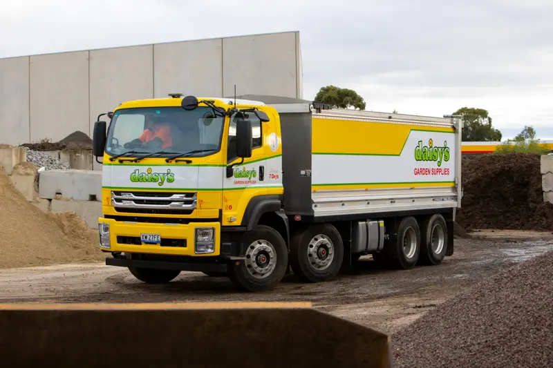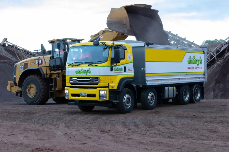 Daisy’s took delivery of two additional Isuzu trucks to assist with the increasing demands on the business. First-up was a brand-new FXY 240-350 with a tipper body. Featuring a GVM of 24,000 kilograms and a GCM of 45,000 kilograms, the FXY 240-350 ensures Daisy’s can deliver its heavy payloads with ease.